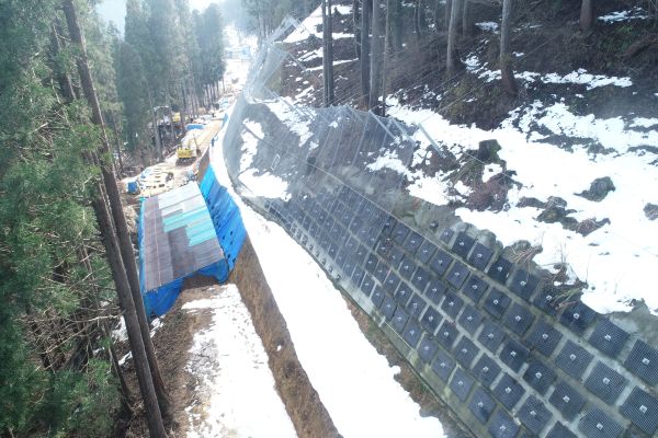 足羽川ダム付替県道4工区土工9擁壁基礎他工事