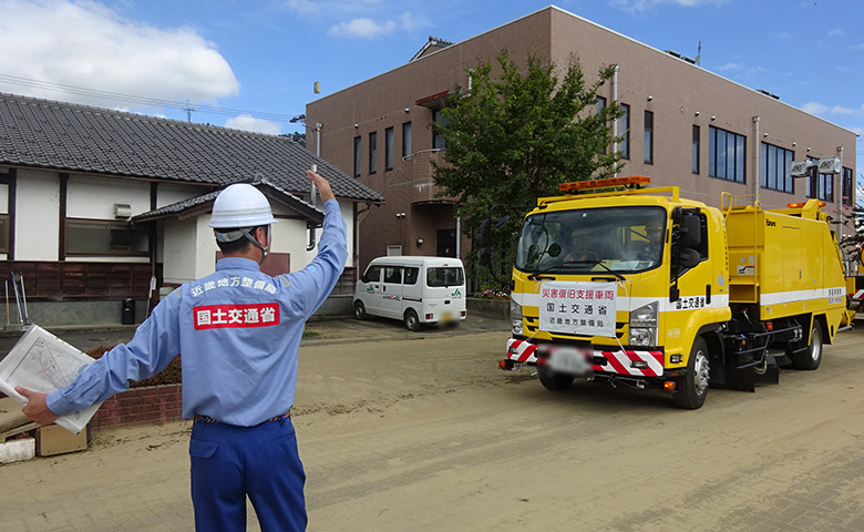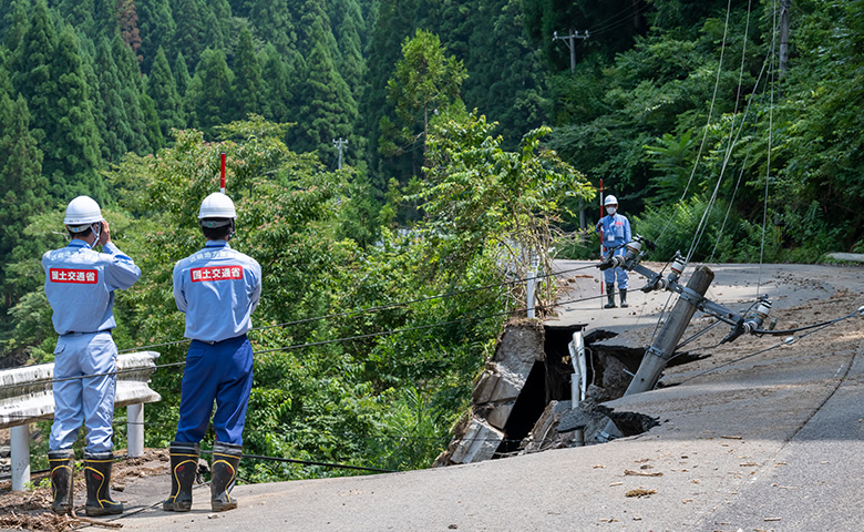 具体的には、二次災害の防止や円滑かつ迅速な応急復旧のための被災状況調査、災害対応についての技術的助言、災害対策用機械による応急対策など、被災した自治体の早期復旧に向け、TEC-FORCEが全力を挙げて応援します。