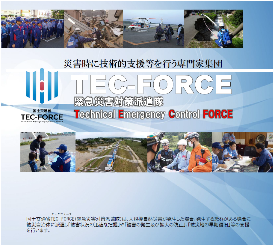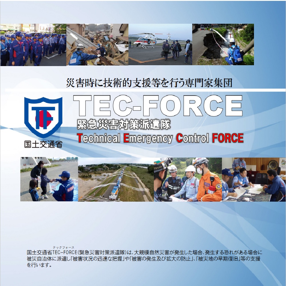 令和7年6月4日の「災害対策基本法等の一部を改正する法律」の公布・一部施行を受け、緊急災害対策派遣隊(TEC-FORCE)の増強と行政機関・民間企業・学識者などの専門性を持った多様な主体との更なる連携強化により、被災自治体への新たな応援体制を構築していきます。