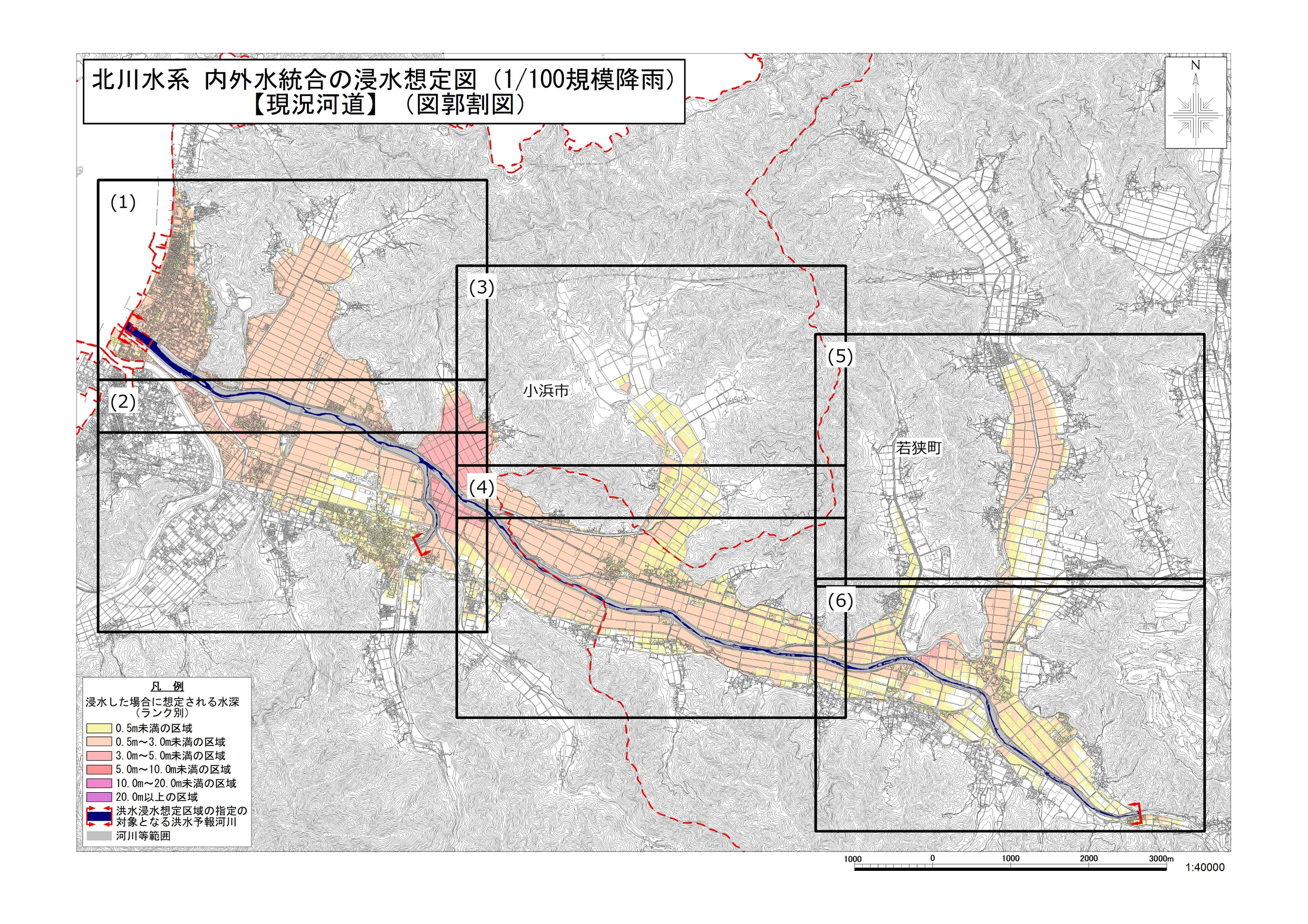 北川水系 多段階の浸水想定図【現況河道】 (1/100規模降雨)