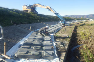 決壊までの時間を少しでも引き延ばすよう、堤防構造を工夫する対策として堤防天端をアスファルトで保護する工事や、堤防の裏法尻をブロック等で補強する工事を実施しております。