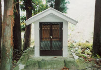 金山の神明神社社殿の右側には、薬師如来座像が安置されていて、土地の人からは水難除けの石仏として崇められている。