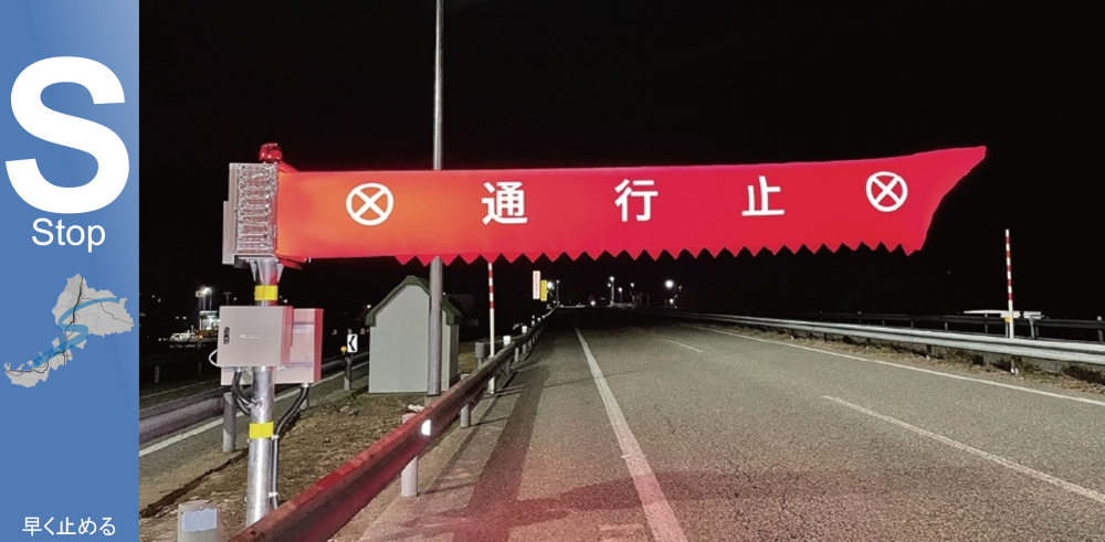 - 規制車両が通行止め箇所に急行し、通行止めを実施