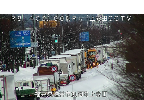 渋滞に巻き込まれる除雪車