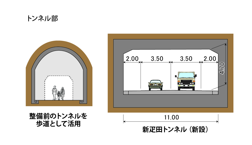 | 標準断面図 | トンネル部 | 計画断面図 | トンネル部 | 計画断面図 | トンネル部 | |