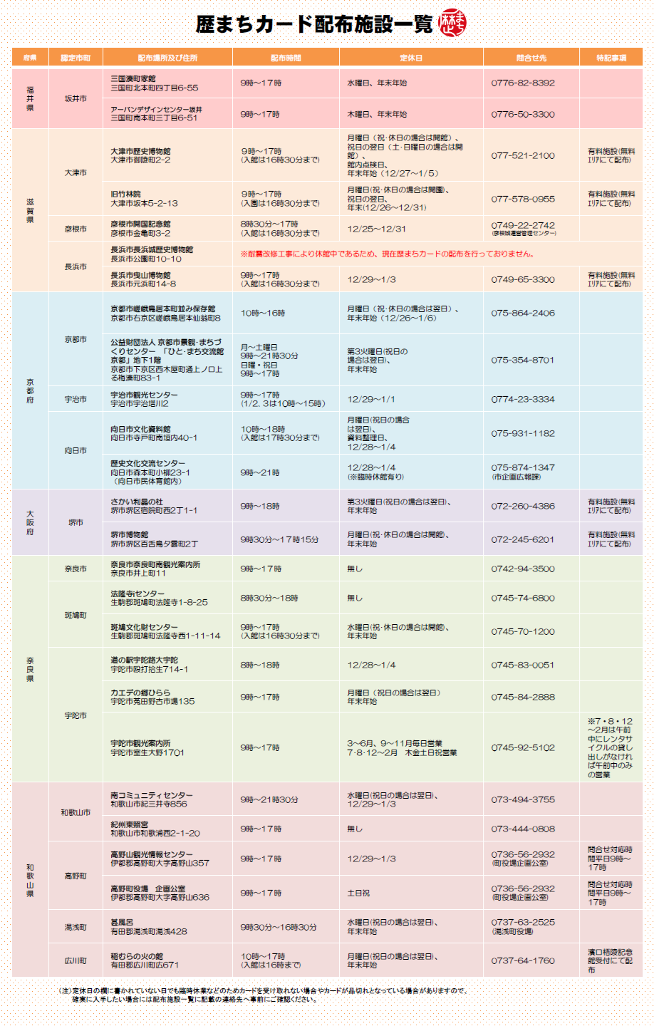 歴まち認定都市※が連携し、平成30年11月より配布を開始しています。