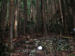 猪鼻王子は、発心門王子の社殿の真向かいに船玉神社と書かれた鳥居を抜け、しばらく歩いた道下の林の中にあります。ここは、音無川の水源付近です。