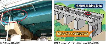 地震で橋桁の落下を防ぐため、アンカーボルトなどを設置します。