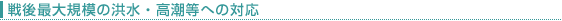 伊勢湾台風のような台風接近に伴う高潮への対応として、大阪湾ゼロメートル地帯を防護する海岸堤防や護岸等の耐震化・老朽化対策を推進します。