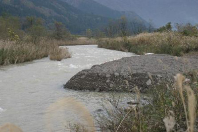 ダムからの放流により、約200立方メートルの砂を全て流掃する事が出来た。