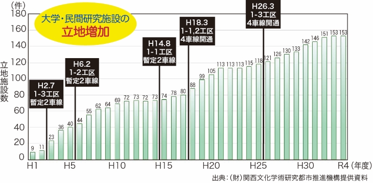 関関清滝生駒道路が整備されることにより、ネットワークが形成され、関西文化学術研究都市の大学・民間研究施設の立地の増加や人口の大幅な増加など地域活性化促進支援の一端をになっています。援