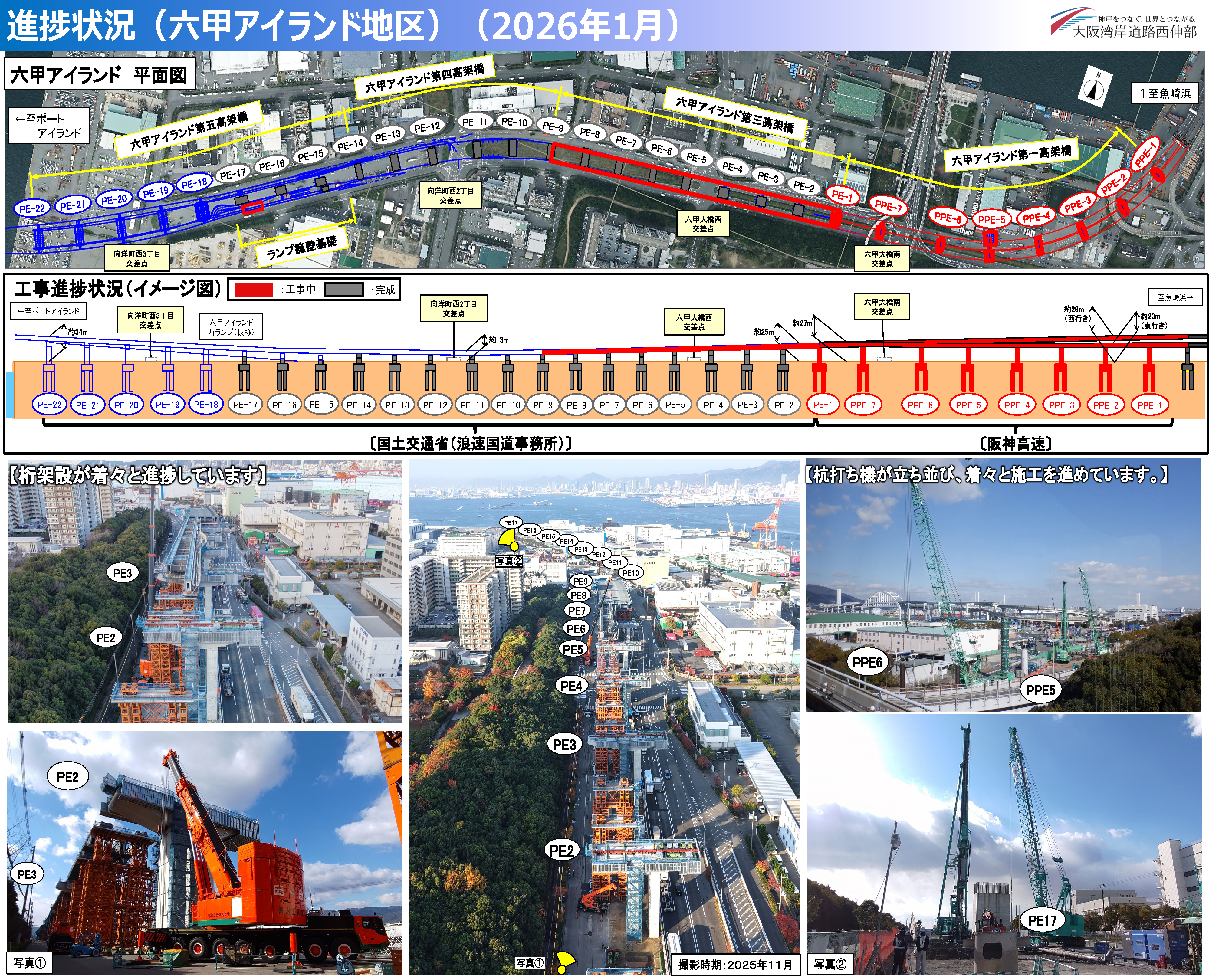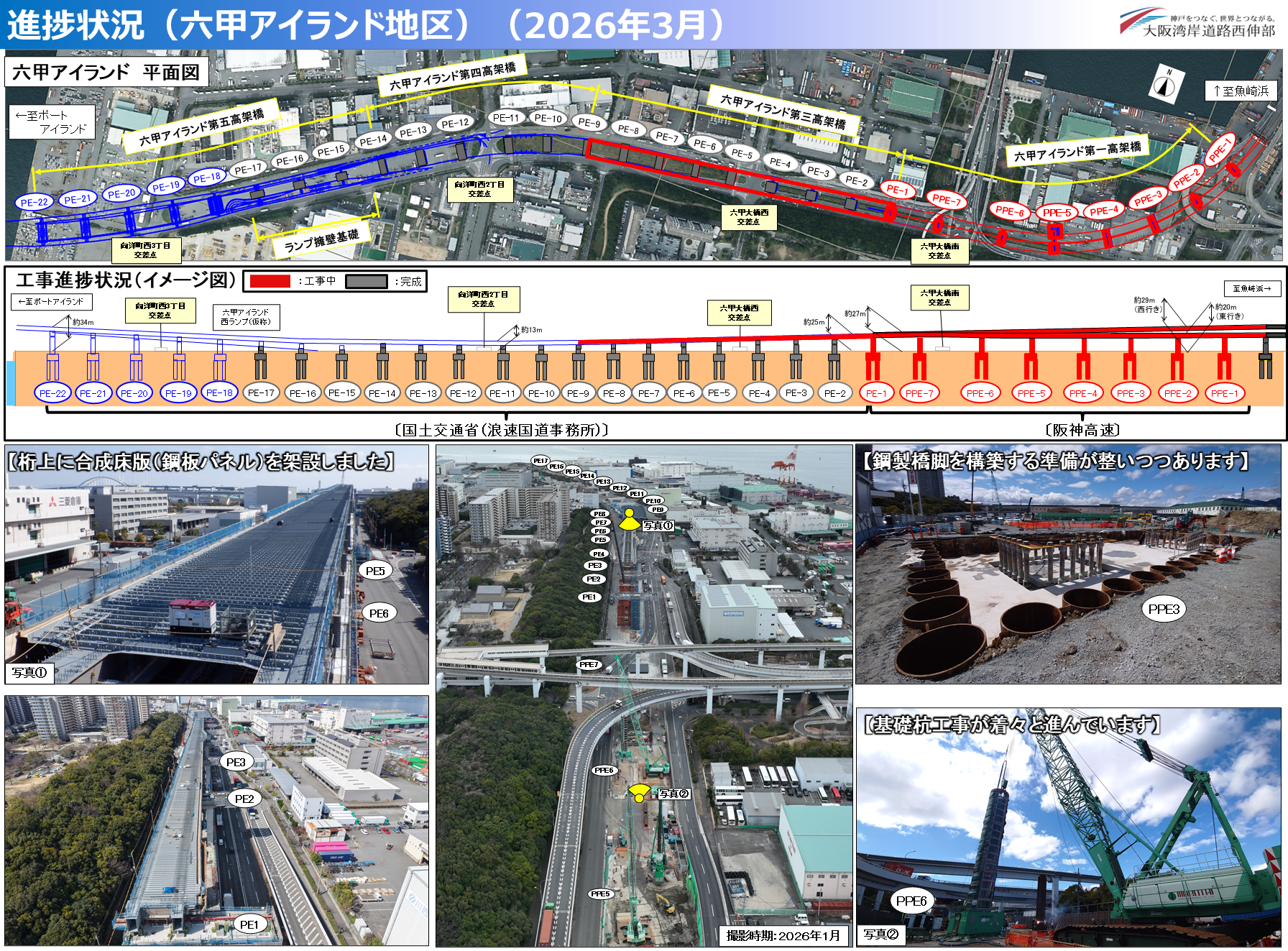 【動画】大阪湾岸道路西伸部 六甲アイランド工事状況(2022.3)