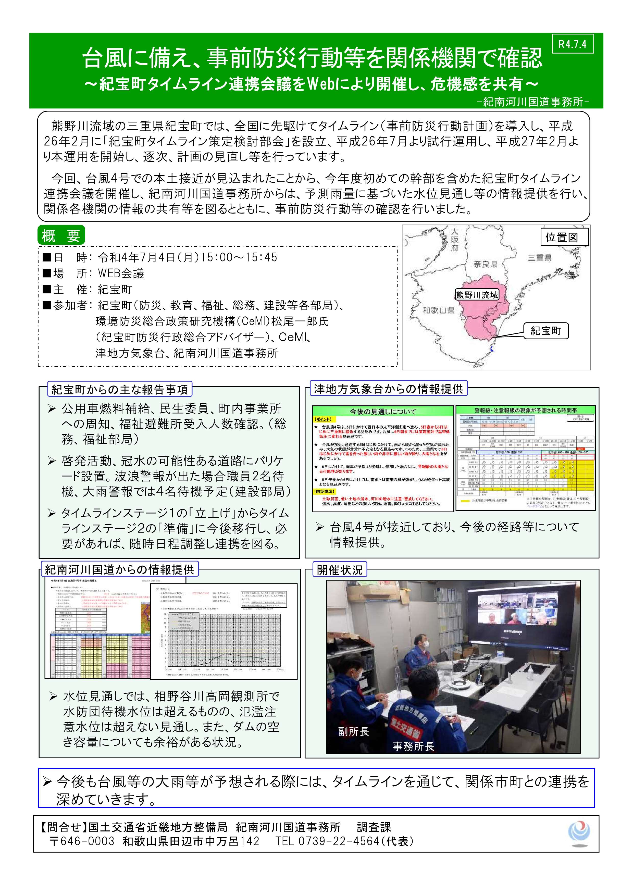 【紀南河川国道事務所】台風に備え、事前防災行動等を関係機関で確認~紀宝町タイムライン連携会議をWebにより開催し、危機感を共有~