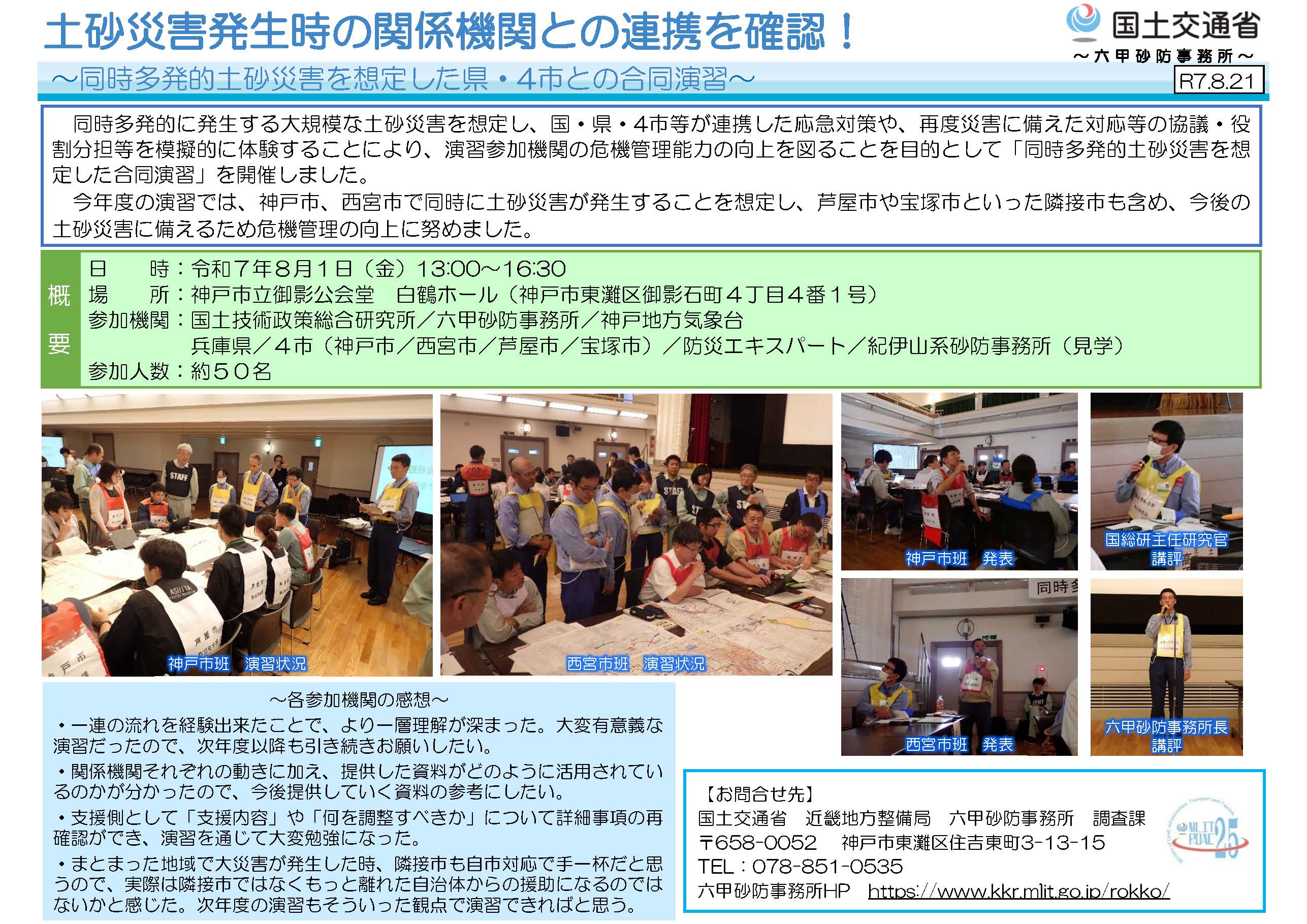 【六甲砂防事務所】土砂災害発生時の関係機関との連携を確認!~同時多発的土砂災害を想定した県・4市との合同演習~
