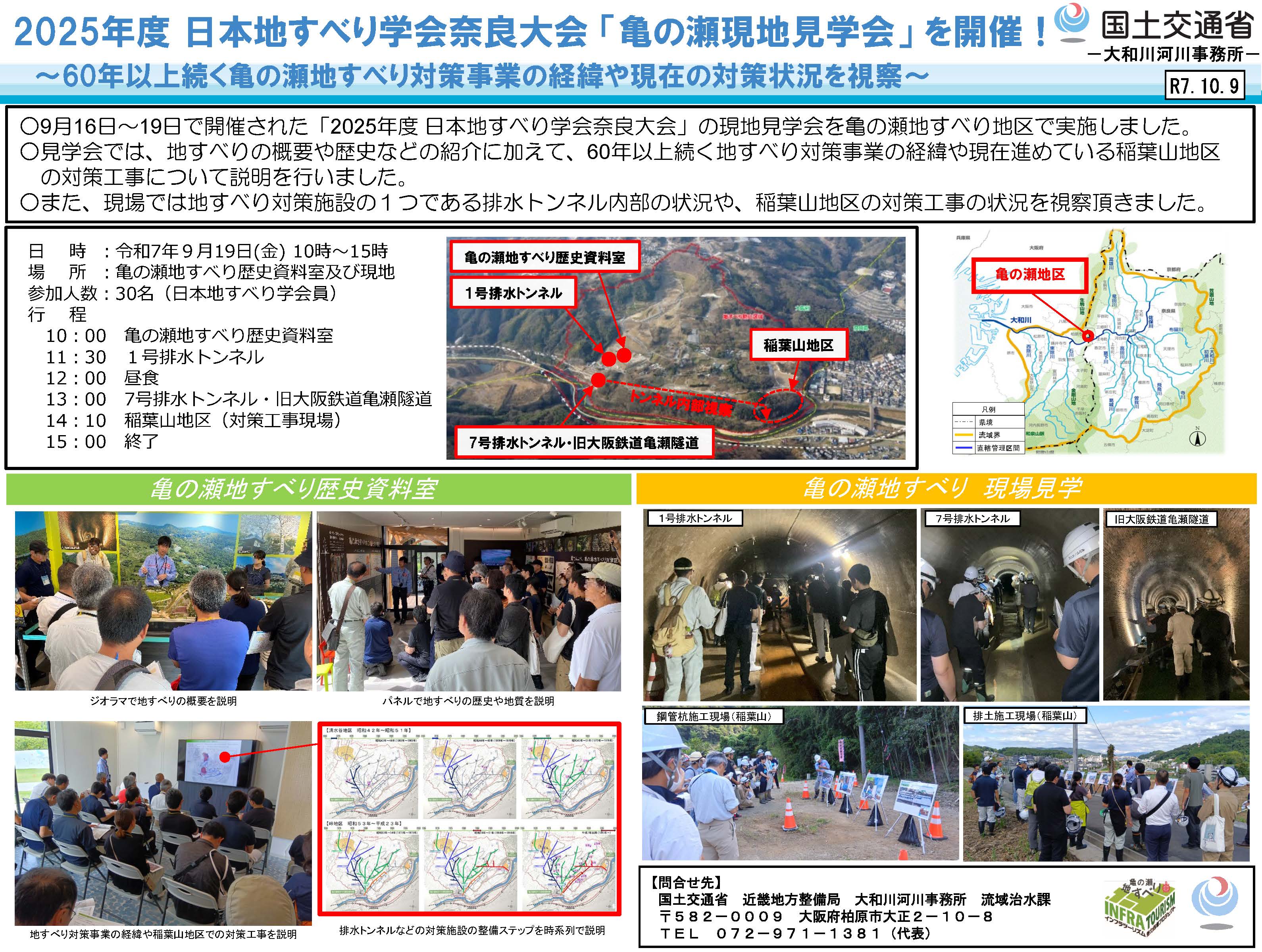 【大和川河川事務所】2025年度 日本地すべり学会奈良大会 「亀の瀬現地見学会」 を開催!