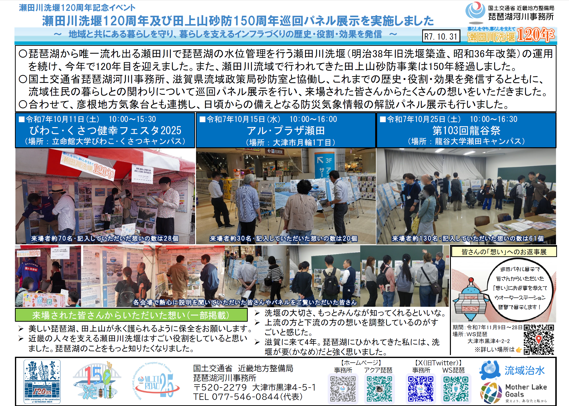 【琵琶湖河川事務所】瀬田川洗堰120周年及び田上山砂防150周年巡回パネル展示を実施しました