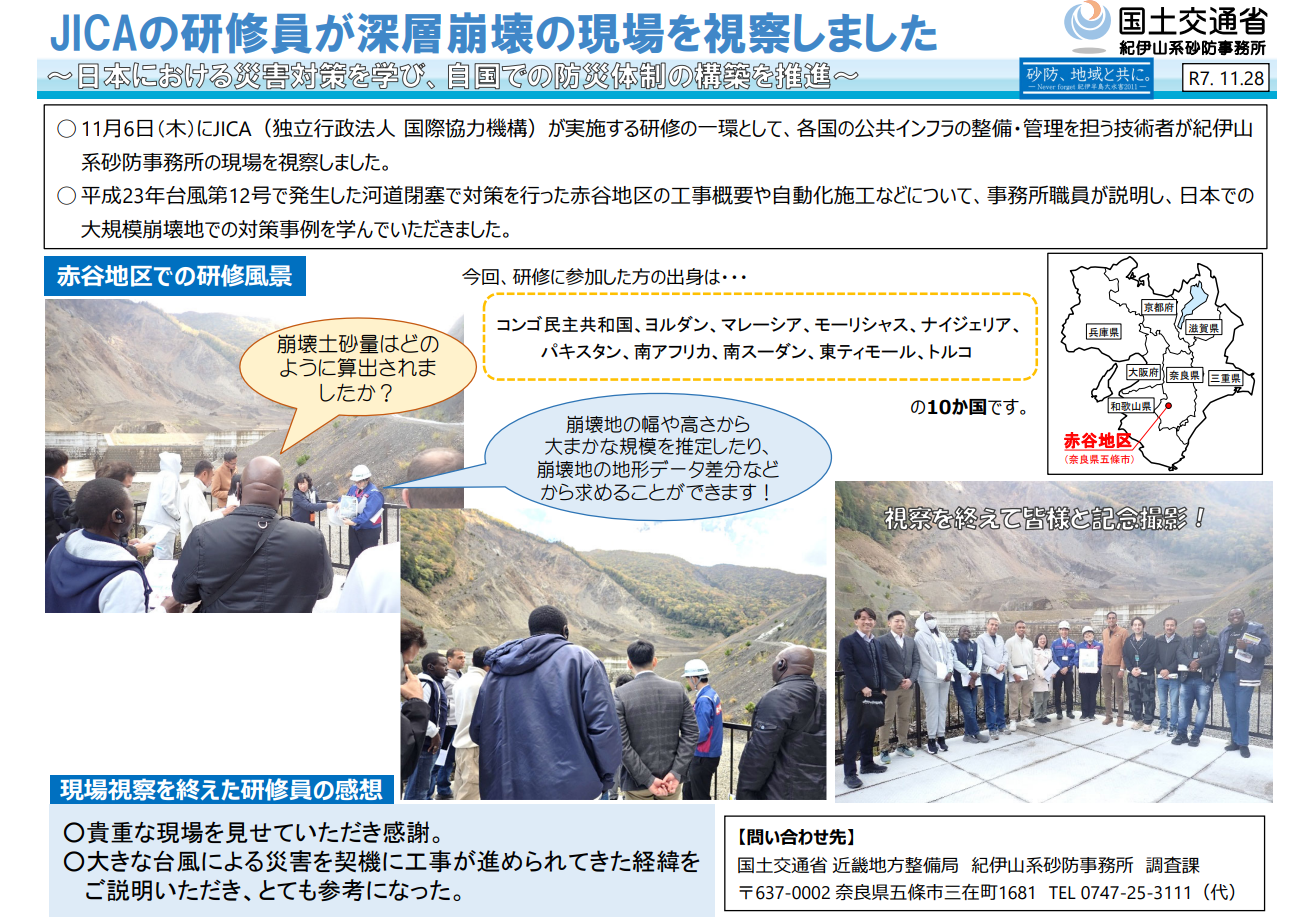 【紀伊山系砂防事務所】 JICAの研修員が深層崩壊の現場を視察しました~日本における災害対策を学び、自国での防災体制の構築を推進~