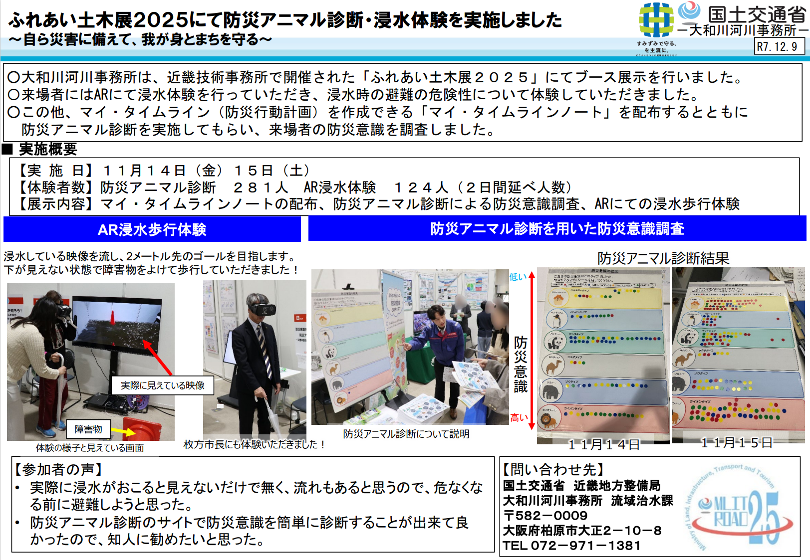【大和川河川事務所】ふれあい土木展2025にて防災アニマル診断・浸水体験を実施しました