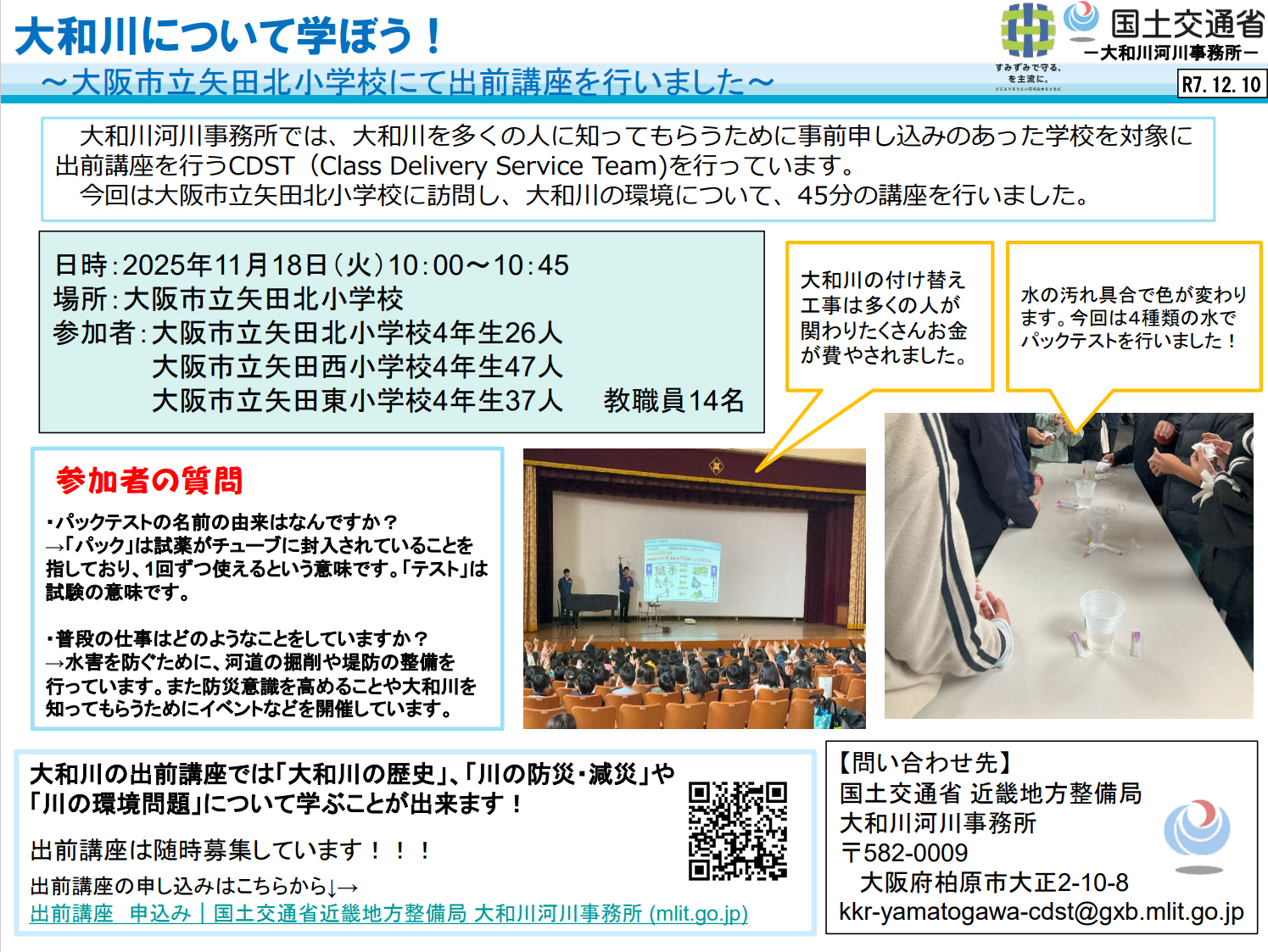 【大和川河川事務所】大和川について学ぼう!~大阪市立矢田北小学校にて出前講座を行いました~