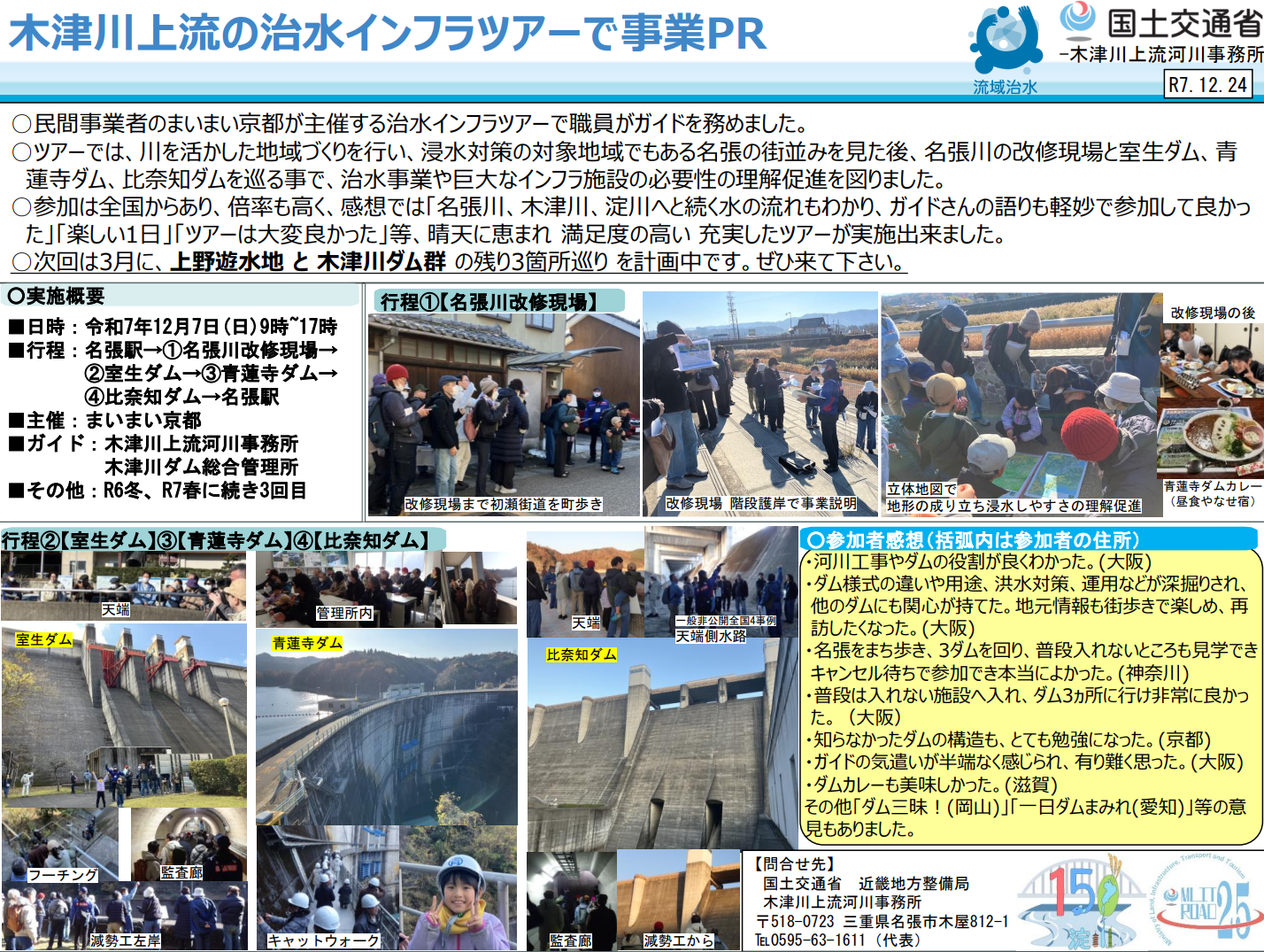 【木津川上流河川事務所】木津川上流の治水インフラツアーで事業PR