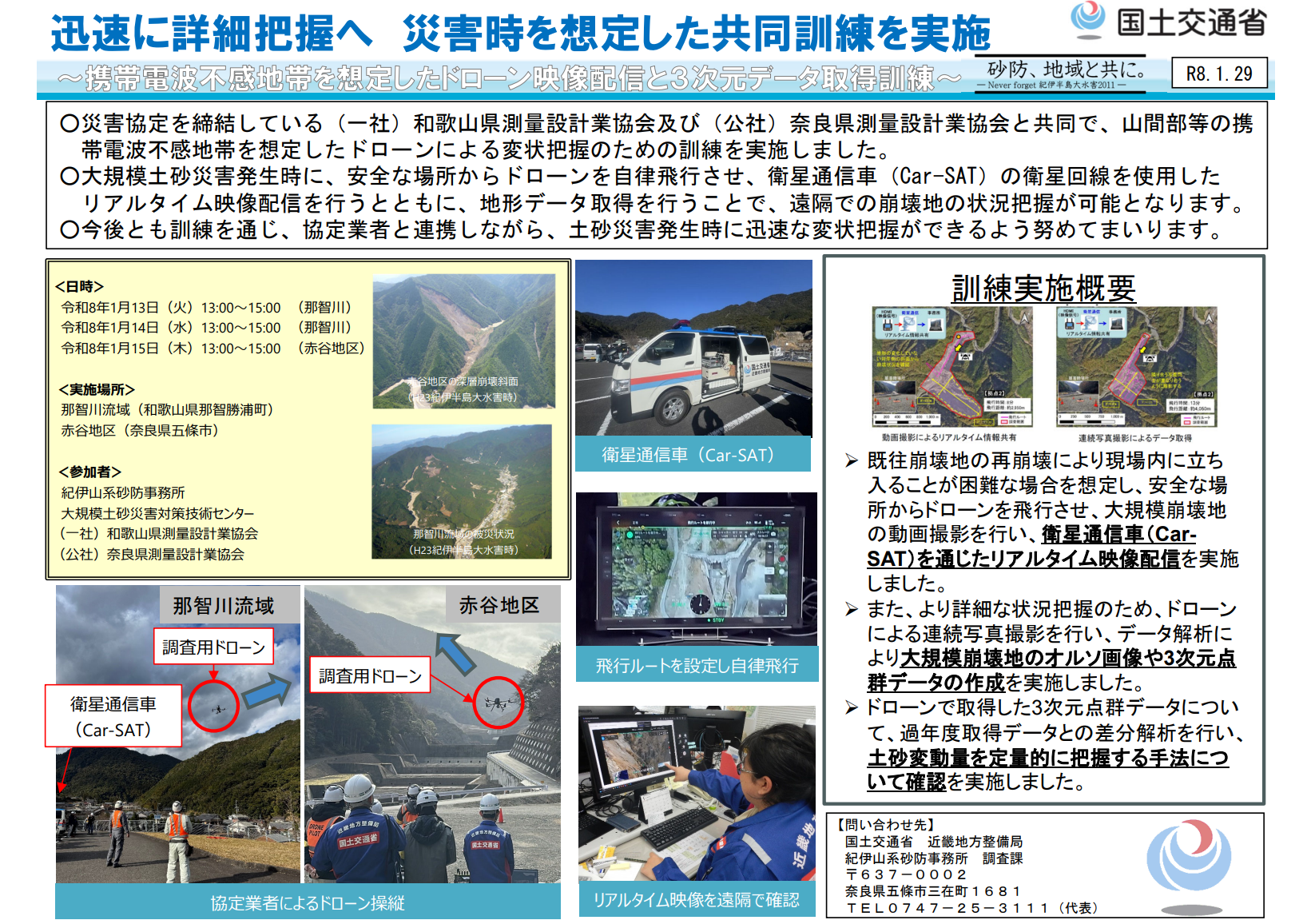 【紀伊山系砂防事務所】 迅速に詳細把握へ 災害時を想定した共同訓練を実施