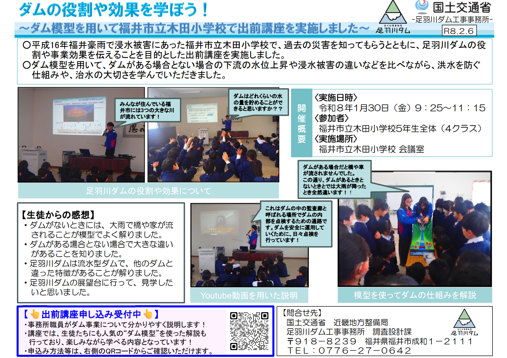 ~ダム模型を用いて福井市立木田小学校で出前講座を実施しました~