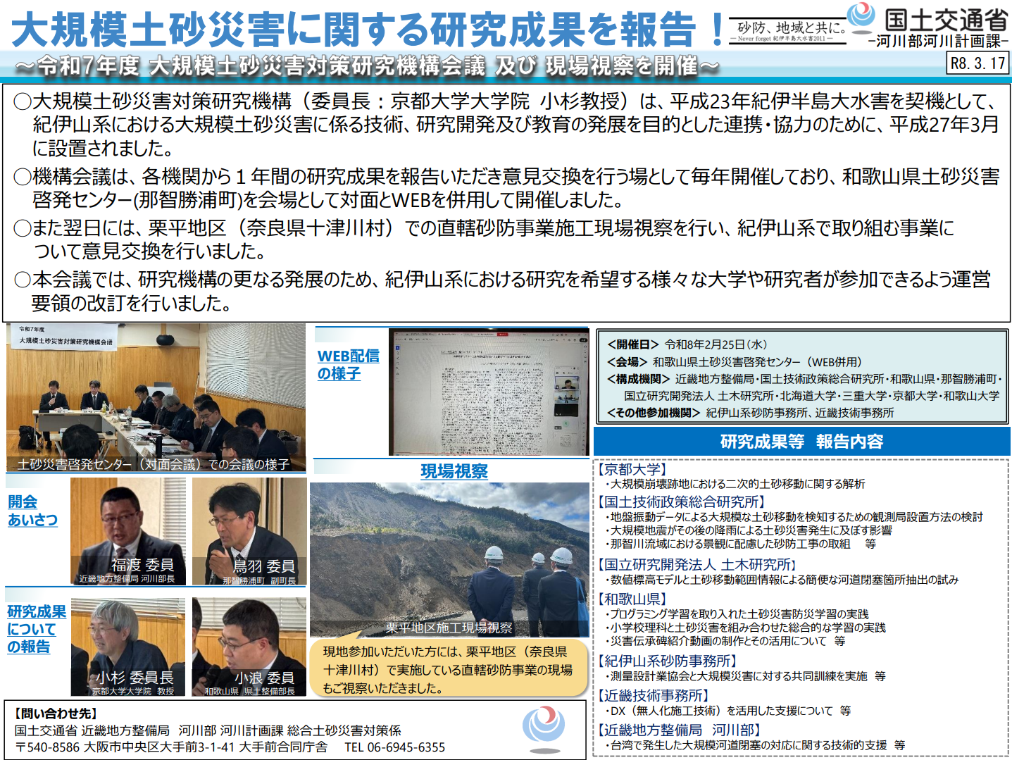 ~令和7年度 大規模土砂災害対策研究機構会議 及び 現場視察を開催~
