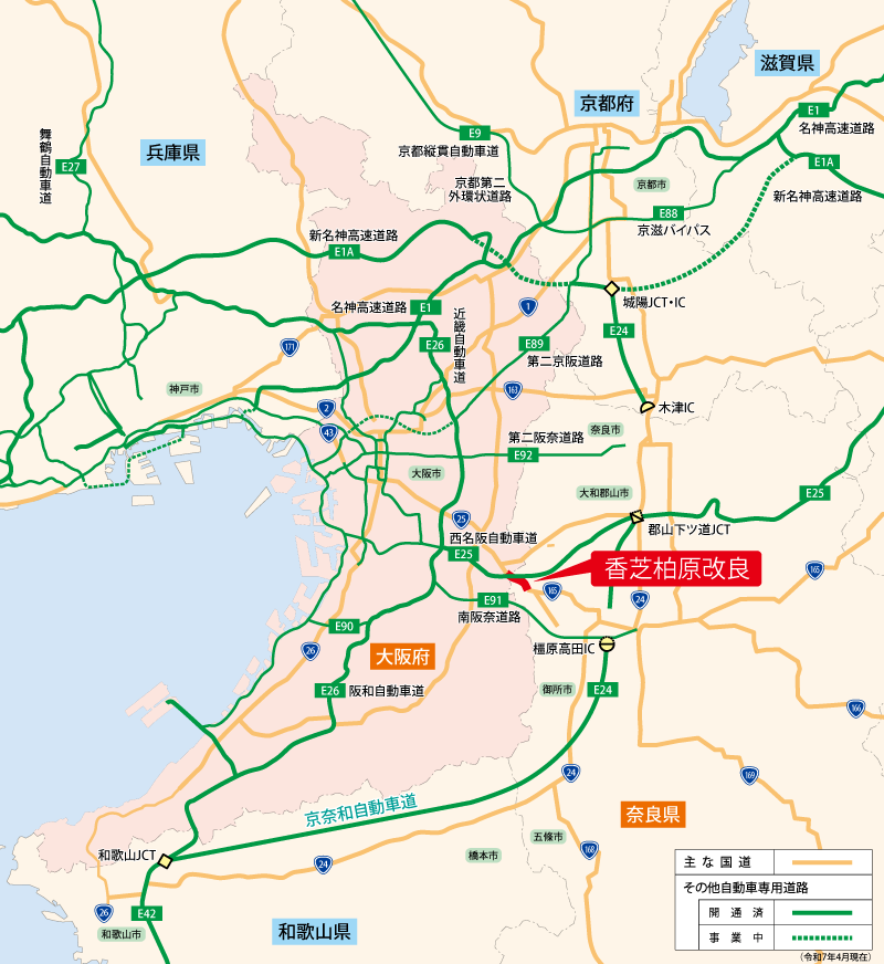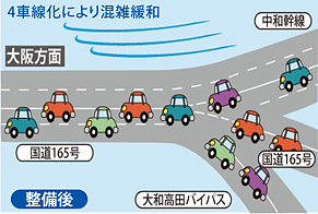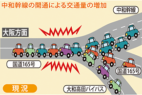 中和幹線から集中する交通を円滑に処理するとともに、西名阪自動車道へのアクセス性を高め、さらには、