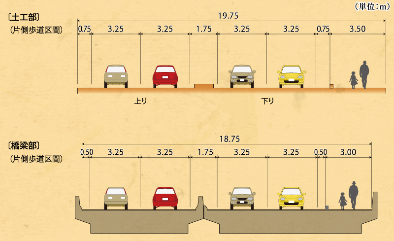 ■4車線に拡幅することにより、渋滞を大幅に緩和し交通の円滑化を図ります。