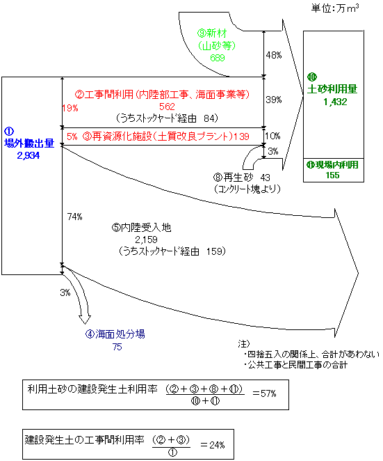 図1.建設発生土の搬出・利用状況(平成14年度)近畿版