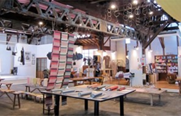 中心市街地の路地にある、のこぎり屋根が特徴の、かつての播州織の工場跡地を活用した工房&アンテナショップです。日曜日には大型織機での実演も実施しています。