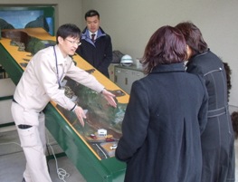 六甲山地での砂防事業についての説明や土石流実験を行った後、砂防えん堤の工事現場などを見ていただきました。