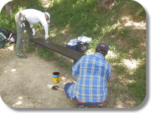 また、梅雨入りを前に、昨年1月に設置した3脚のベンチのメンテナンス(防腐・防蟻・防虫剤の追加塗布)も実施しました。