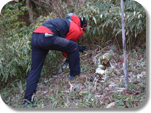 ![]() 手分けしてササ刈り開始 |