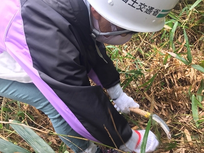伸び放題の下草は大変でしたが、少女会員たちは元気いっぱいに取り組み、植樹した木々の成長を確認しました。