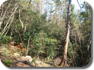 | 整理前の林内 枯れた松の木が2 本あり、ネックになっていました。 | ||