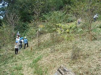 ![]() ネザサの刈込作業 |