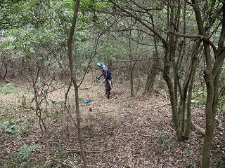 イノシシによる掘り返しと日陰のため、下草が無く土が露出している斜面が多く、今後、土留めが必要と思いました。