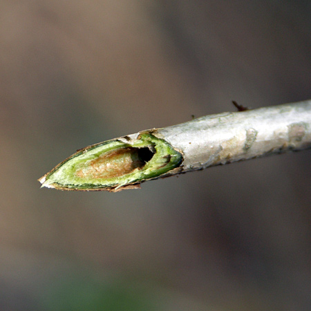 「ウツギ(空木)」の名前のとおり、枝の中心は空洞になっています。(2006.4.28 有馬)