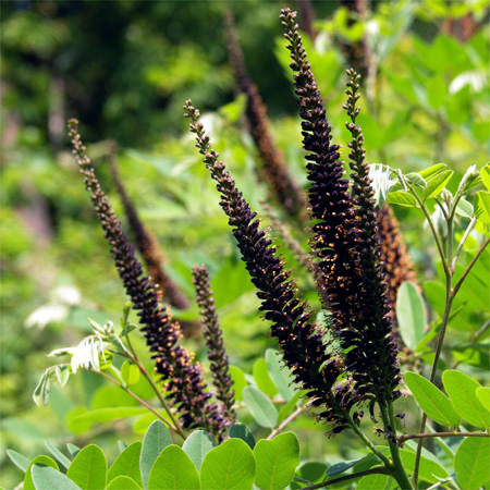 小さな花がたくさん集まって、ツノのように上へ伸びます。(2005.6.7 芦屋市蛇谷)
