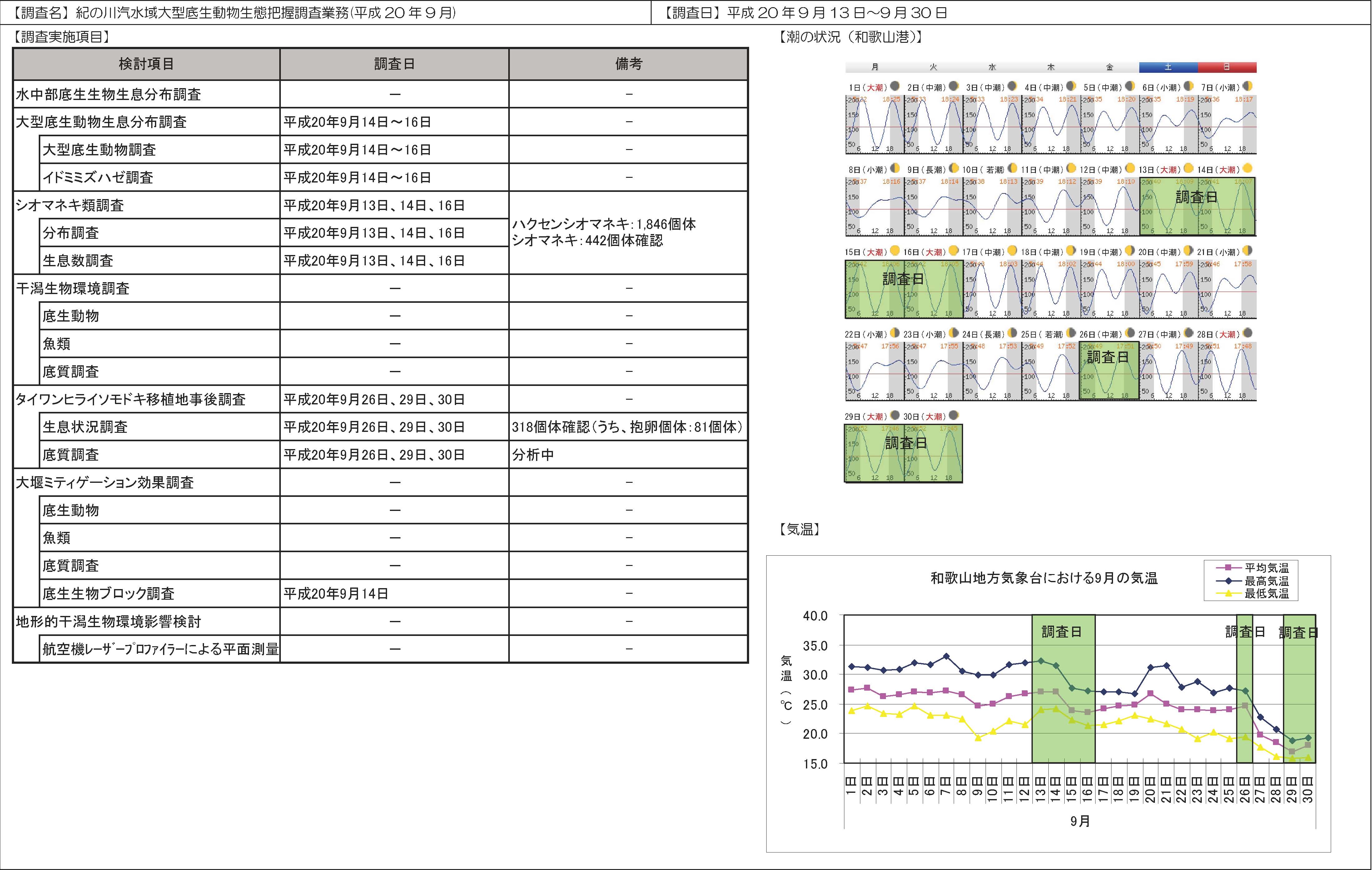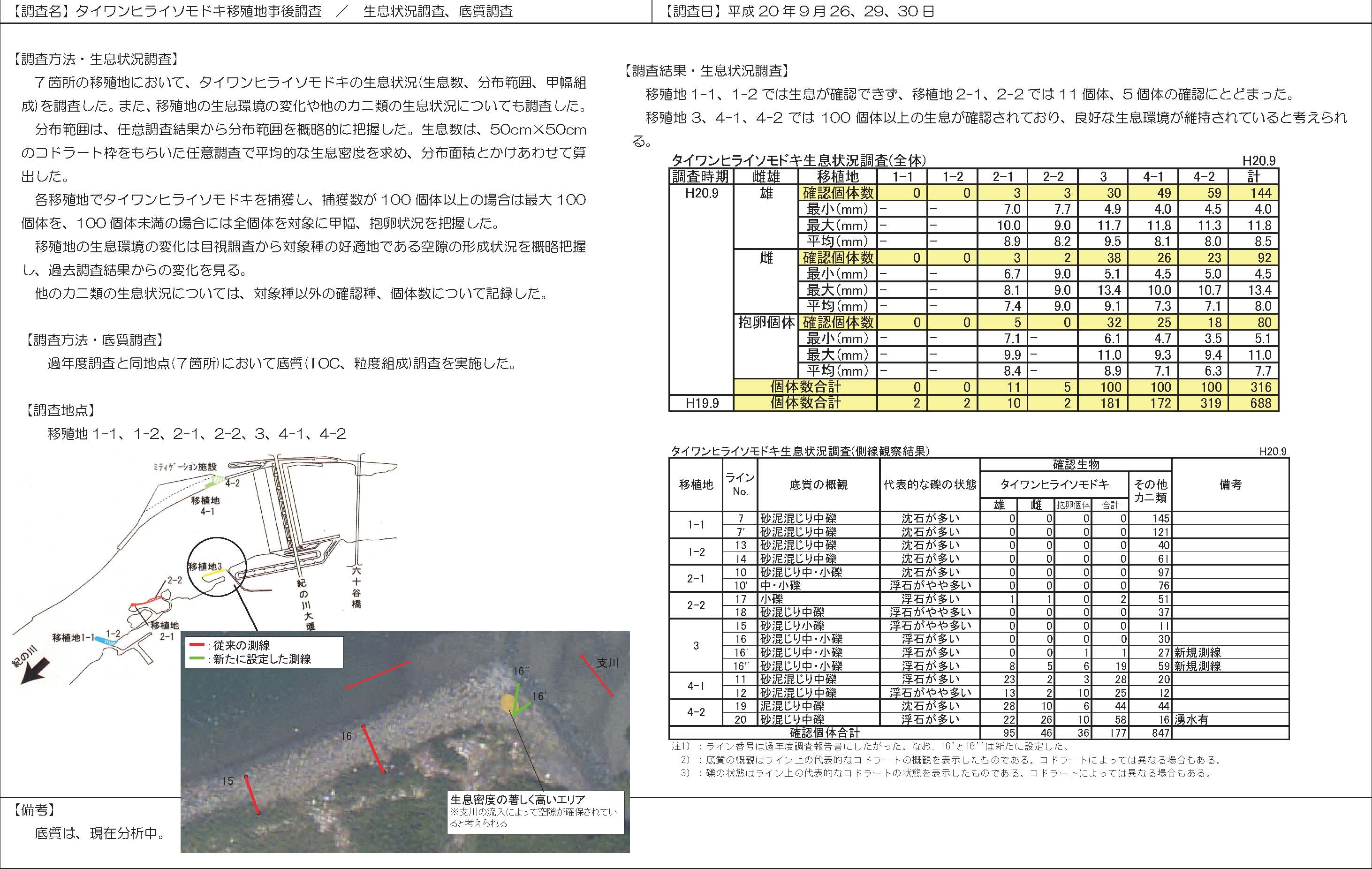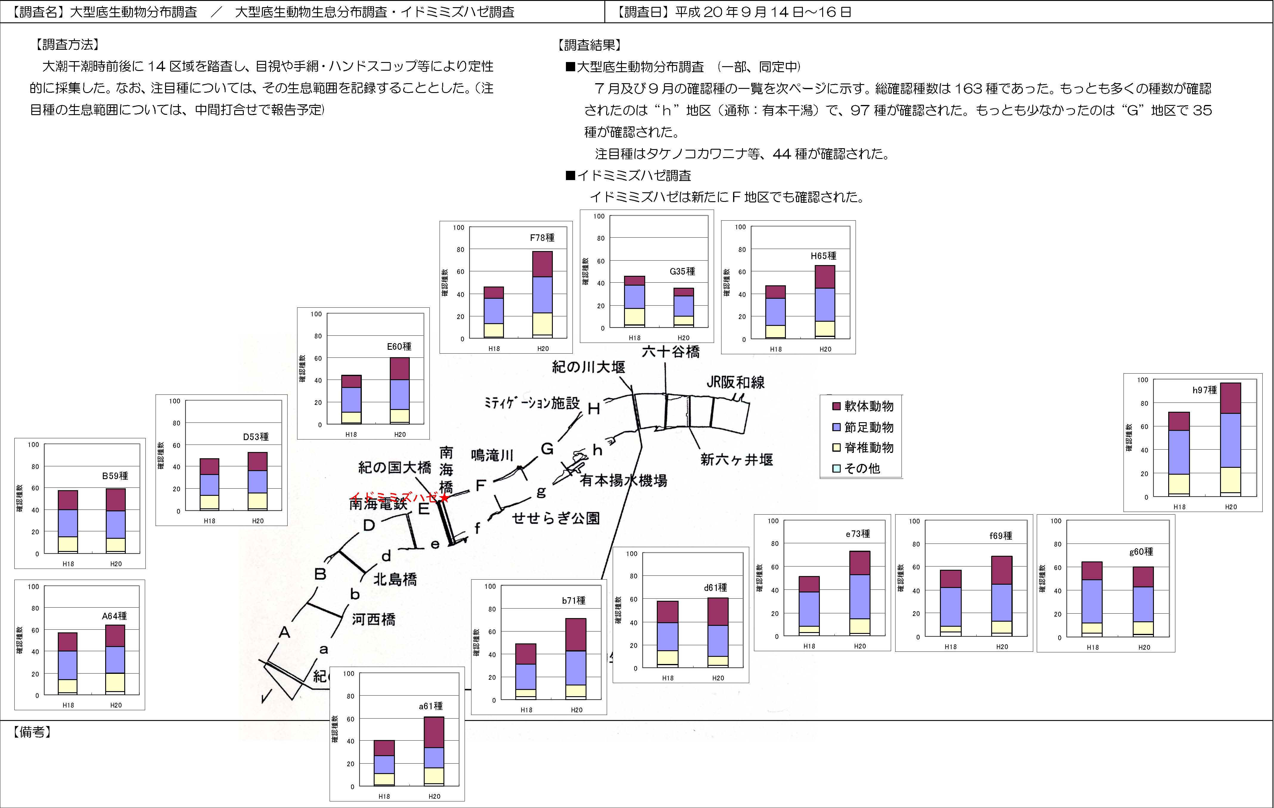 | 【調査名】大型底生動物分布調査/大型底生動物生息分布調査・イドミミズハゼ調査 | 【調査日】平成 20年 9月 14日~ 16日 |