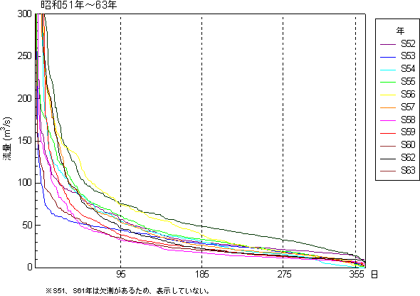 ※S51、S61、H6年は欠測があるため、豊水・平水・低水・渇水流量は表示していない。