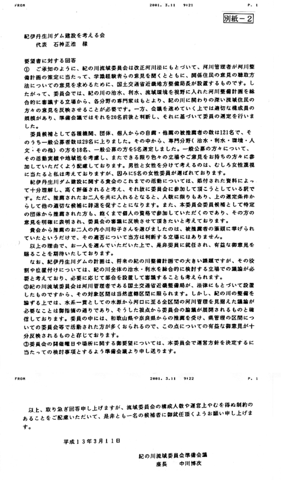 - 別紙-4 紀伊丹生川ダム建設を考える会からのFAX-2