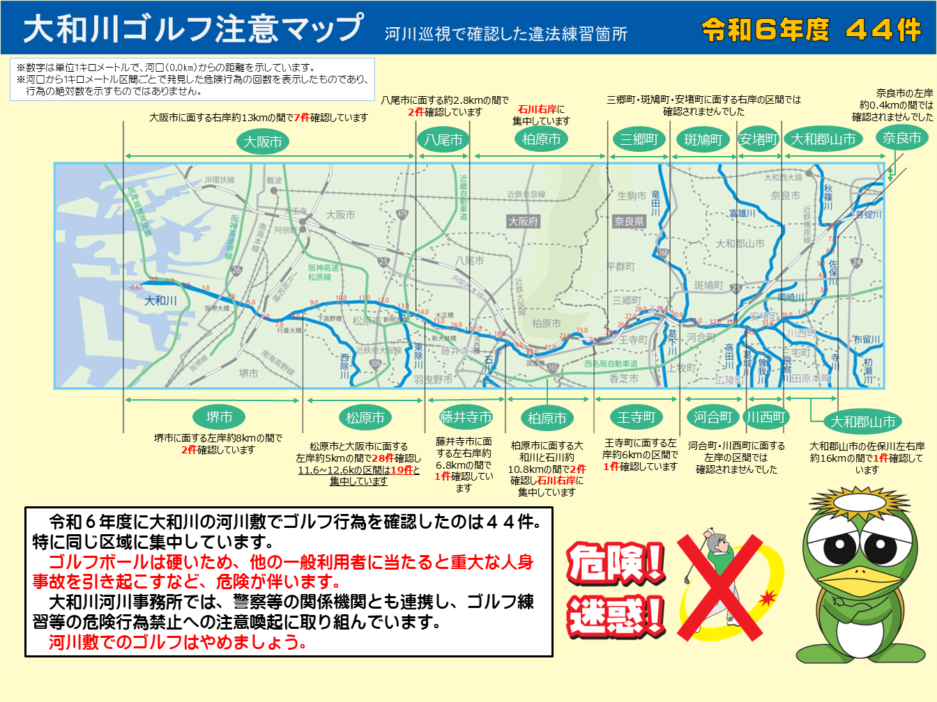 A1:大和川河川敷でのドローン飛行(大きさや重量を問わず)は、他の河川利用者や周辺住民の方にとって、とても危険であるため、原則禁止しています。