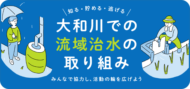 国だけでなく、自治体や企業、住民などあらゆる関係者が協働して、流域全体で水災害対策を行うことを流域治水といいます。 流域治水では、河川整備だけでなく、流域にあるさまざなま施設(たんぼやため池など)を活用したり、川があふれることを前提としたまちづくりなどを行います。
