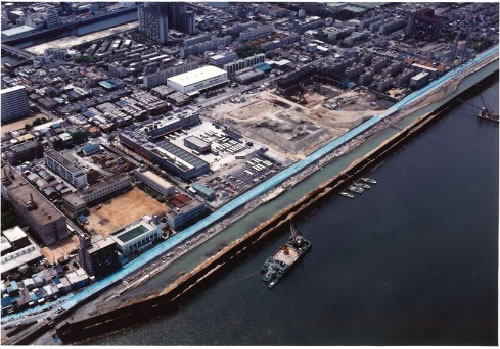 (平成7年1月阪神淡路大震災発生時の淀川・酉島築堤防)