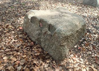 残念石(ざんねんいし)とは、大阪城の城壁(じょうへき)の石垣(いしがき)に採用されなかった石のことを指します。 江戸幕府が大阪城再築の際、廃城(はいじょう)になった伏見城(ふしみじょう)の石を再利用するために船で運んでいましたが、 当時の淀川は川幅(かわはば)が狭く蛇行(だこう)しており、船から落ちてしまった石がありました。 船から落ちてしまった石は、大阪城の城壁になれなかったこと、もう少しで大阪城だったのに残念だということで、残念石といわれるようになりました。 残念石には「山」や「四角」といった刻印(こくいん)が入っており、大阪城の石垣にも同様の刻印が残されています。